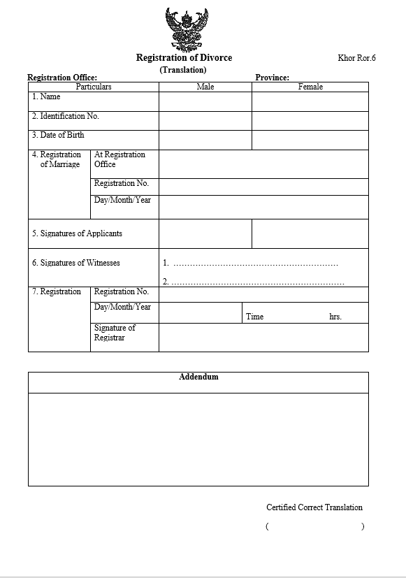 - 婚姻登録証(Kor Ror 3)の内容が正しく確認できること
