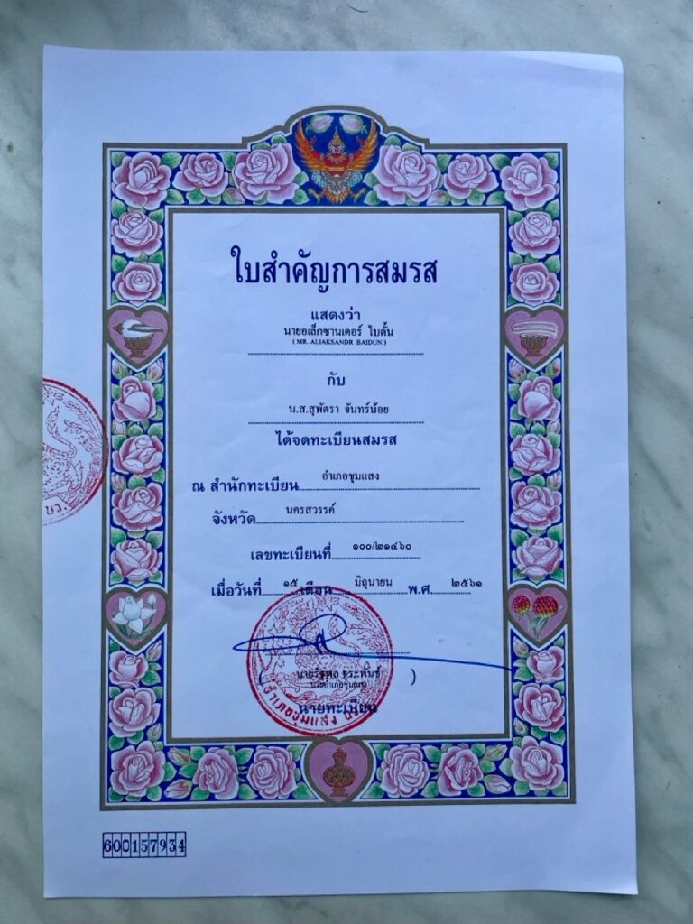 タイの婚姻登録証の内容が確認されることがあります。